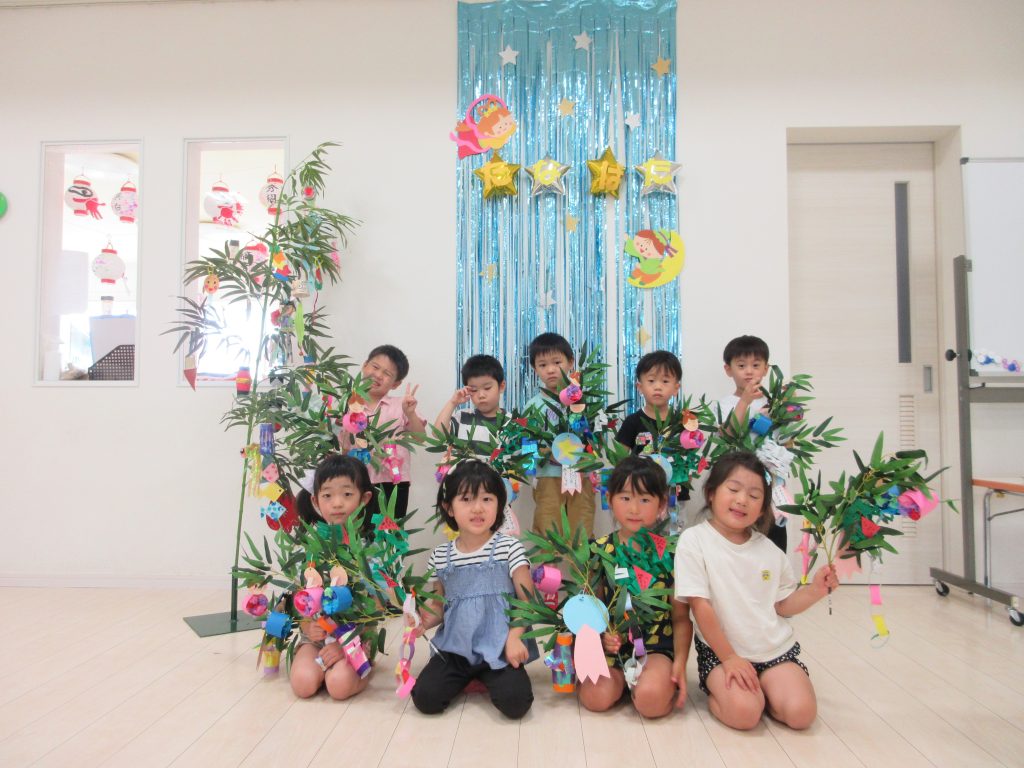 各組で製作した🎋(七夕飾り)をお遊戯室に持ち寄って、お歌を歌っ