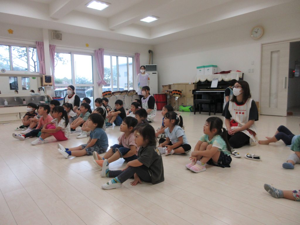 十五夜の由来を聞いたり、段ボールシアターのお話しを興味深そうに見ました。