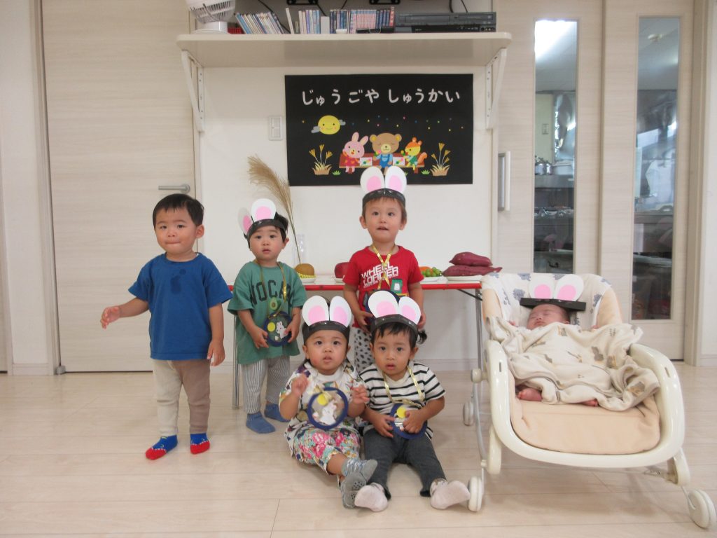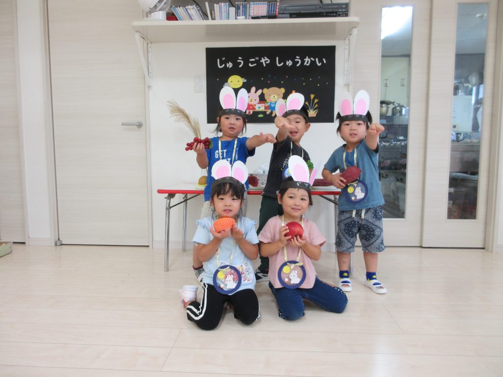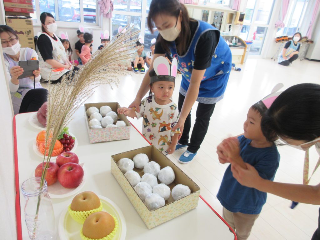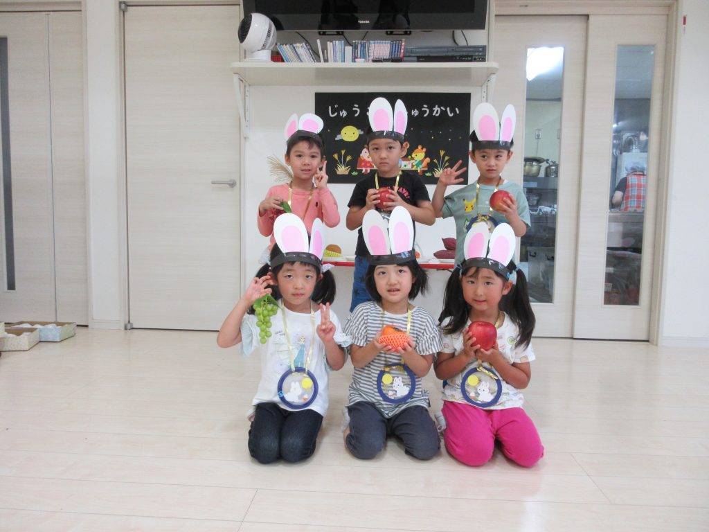 お団子運びリレーでは、ウサギさん🐰の冠をかぶり、かわいいウサギに変身して、お団子を運び、お祈りする姿がかわいかったですよ~💛
