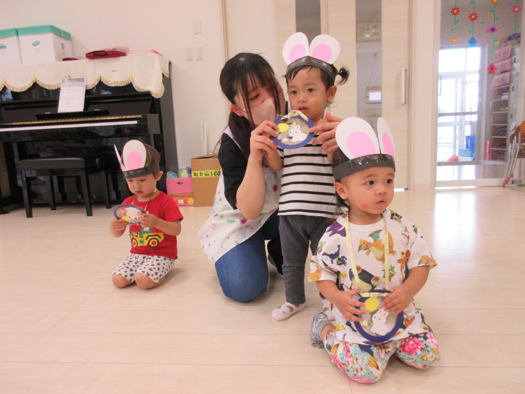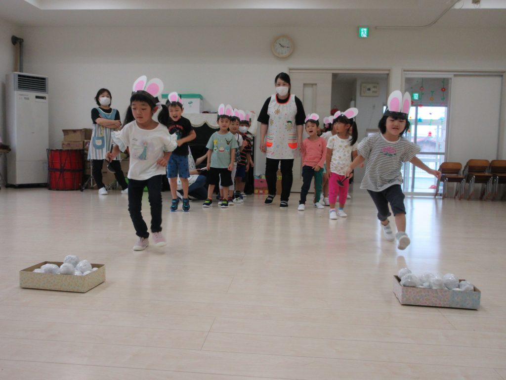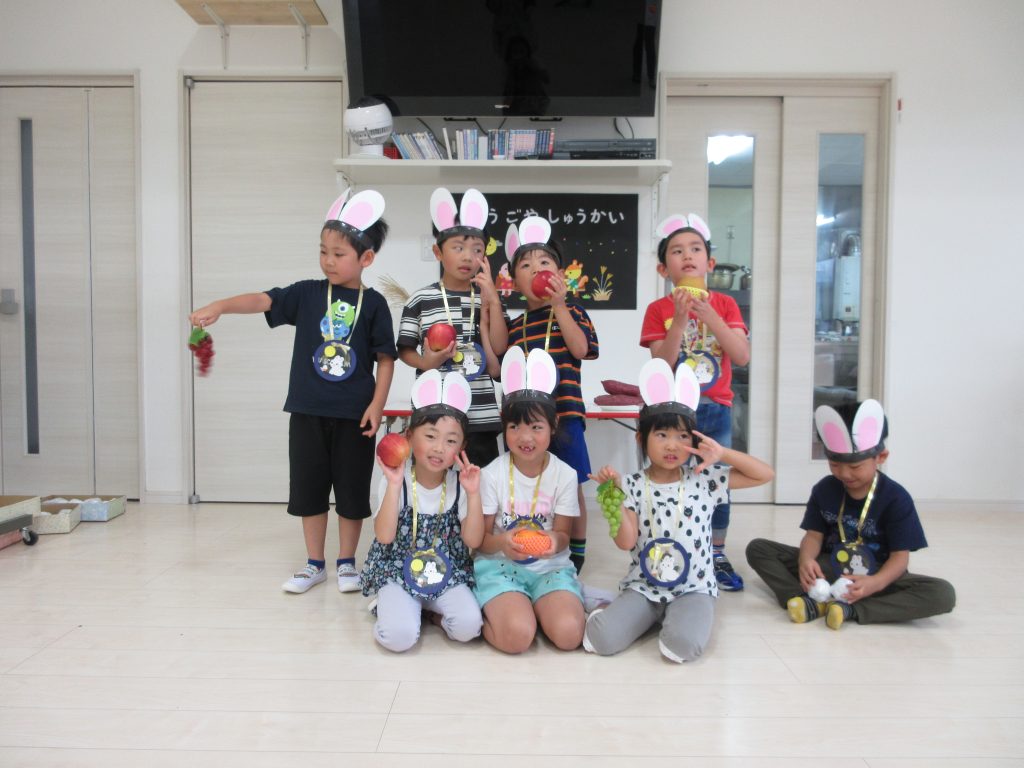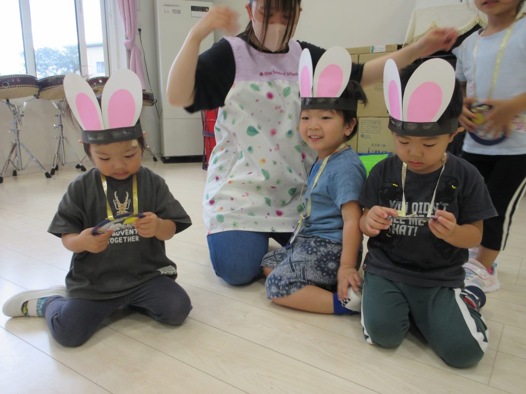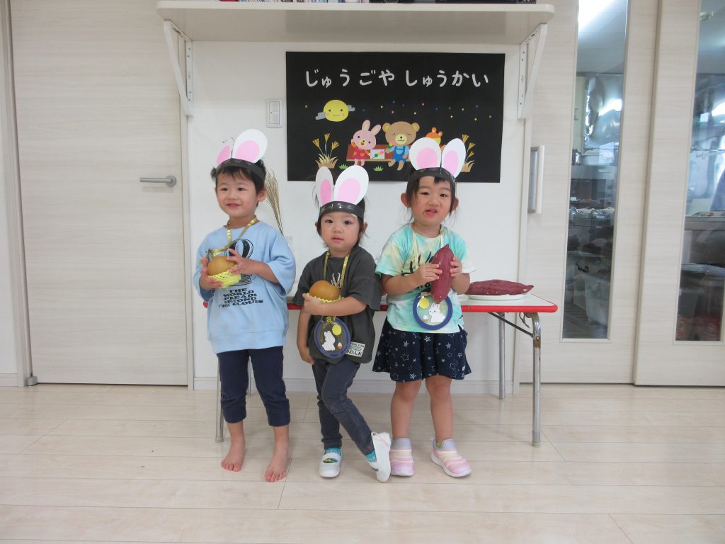 お団子運びリレーでは、ウサギさん🐰の冠をかぶり、かわいいウサギに変身して、お団子を運び、お祈りする姿がかわいかったですよ~💛