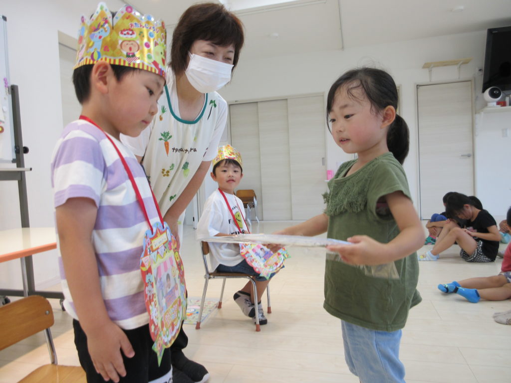 お誕生児さんは大好きなお友達からプレゼントをもらってとても喜んでいました。