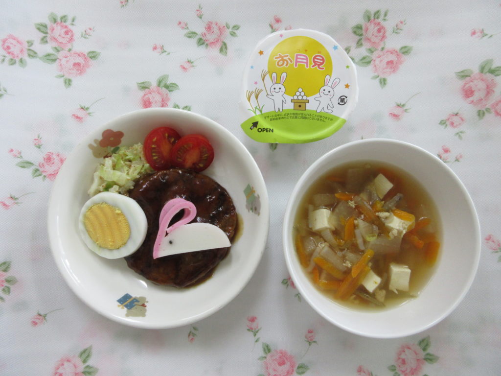 十五夜にちなんで、可愛いうさぎさんがいるお月見給食を調理員さんが作ってくれましたよ☆