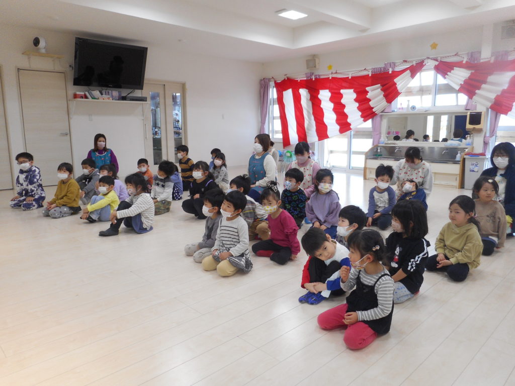 お遊戯室に全園児さんが集合して修了式を行いました。