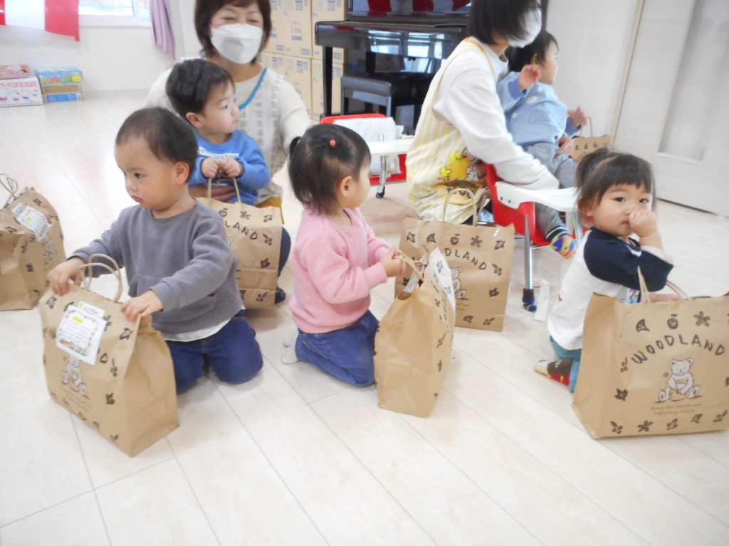 お菓子の入ったプレゼントをもらい、どの子もごきげんでした❕❕❕(