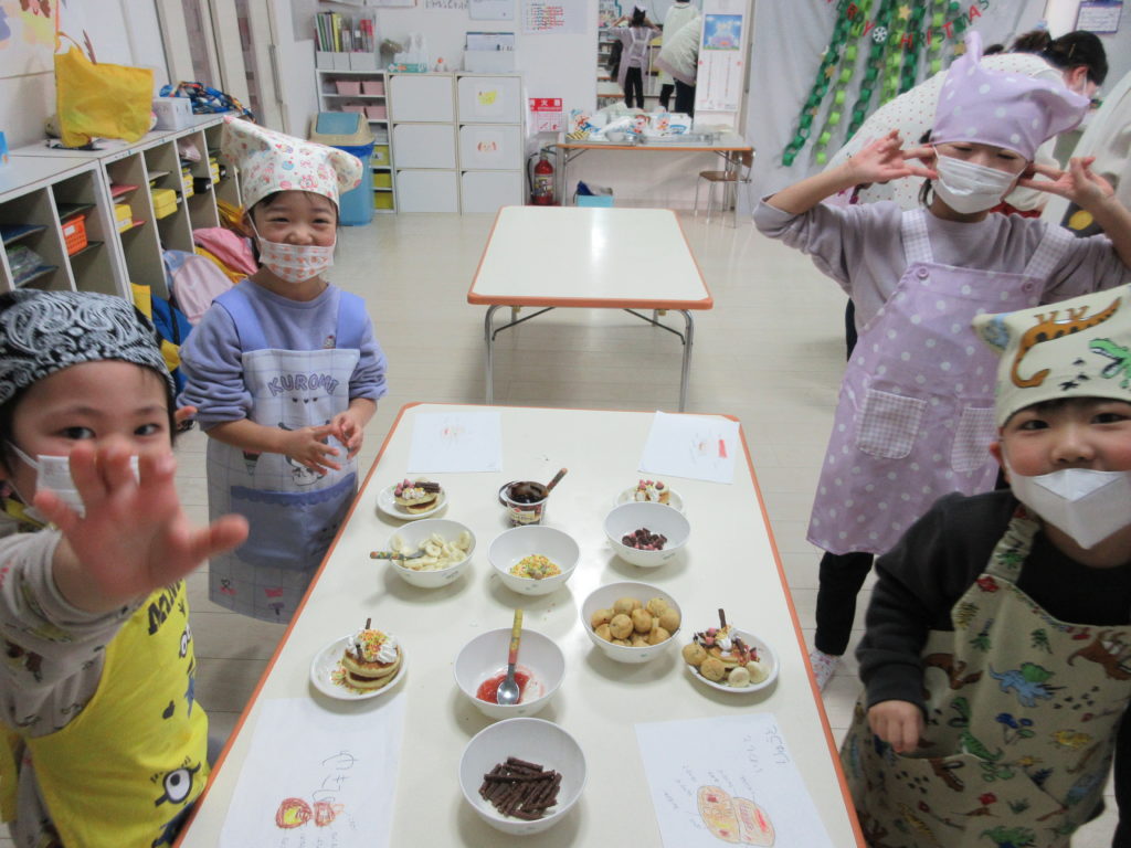 クリスマスデー🎄の午後。さくら組さんが楽しみにしていたクッキングに挑戦しました😊