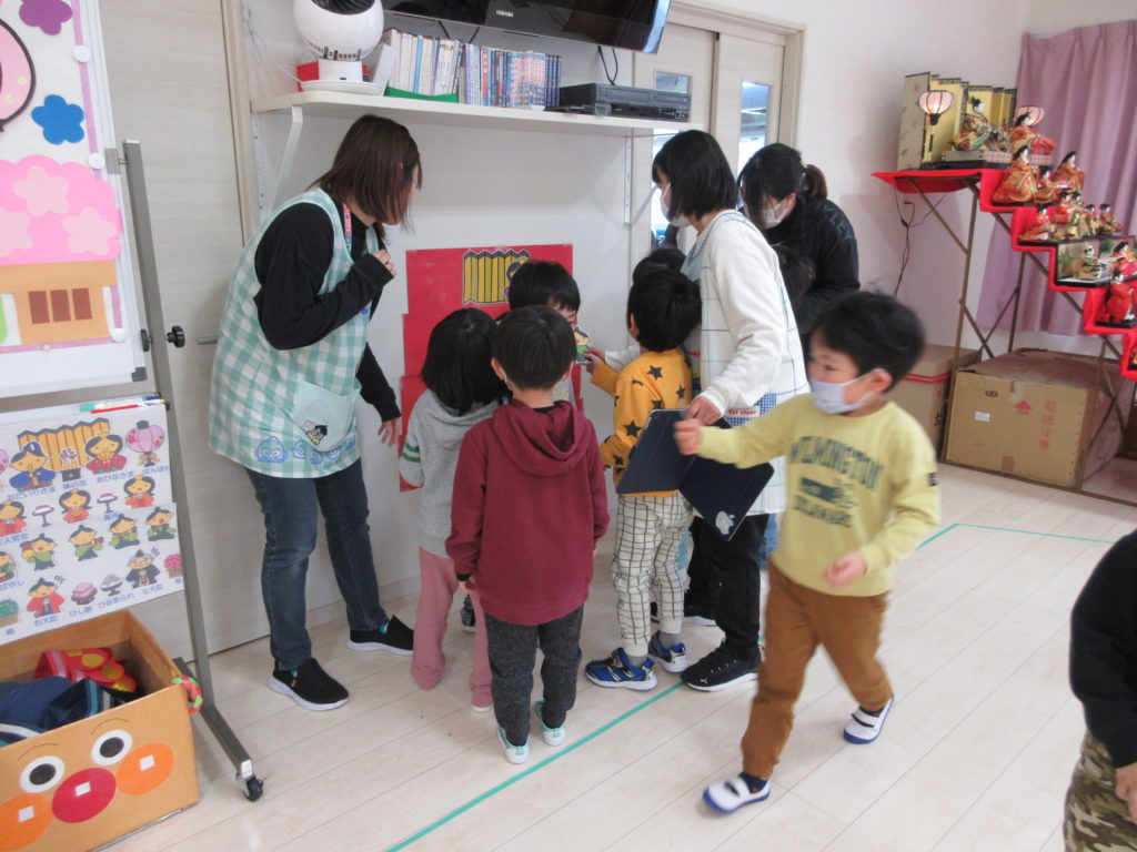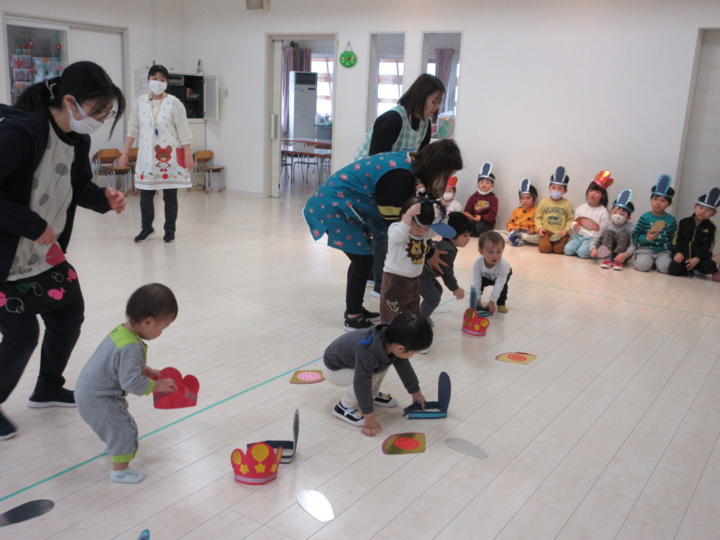 「ひな人形さがしゲーム」と「おひなさまとおだいりさまになろうゲーム」の2つのゲームをして、盛り上がりました~‼