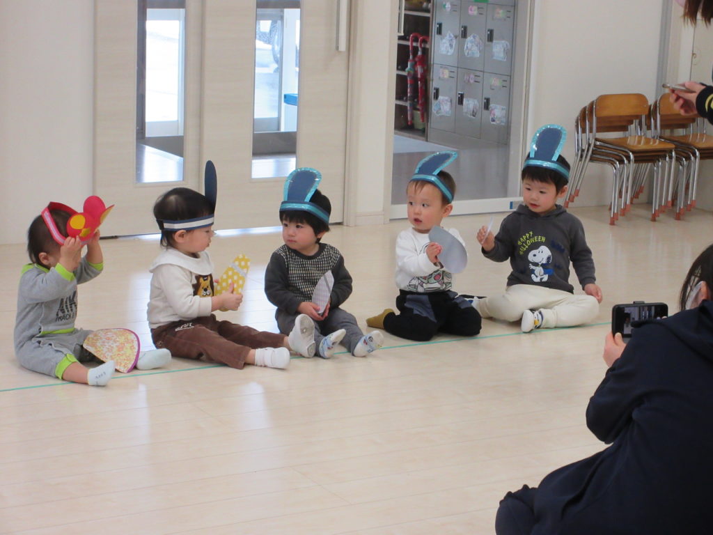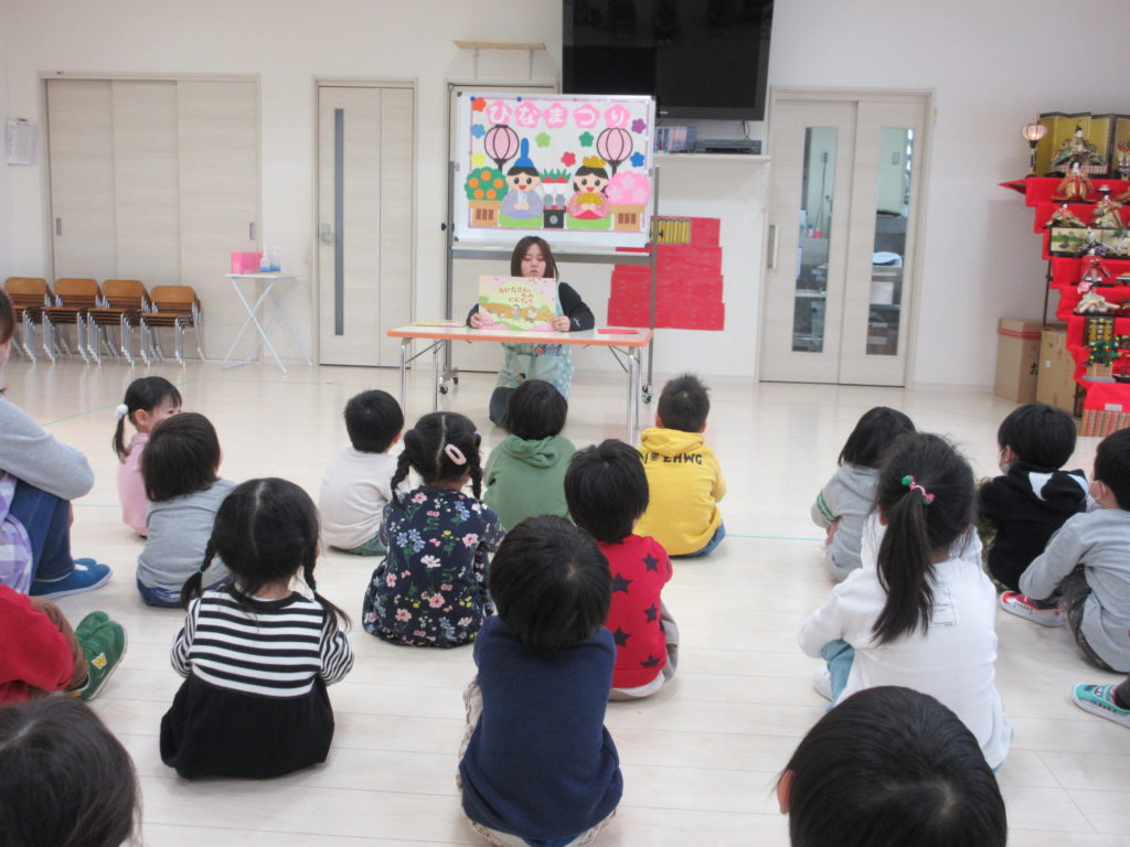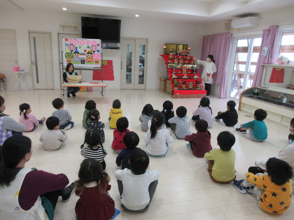 みんなでお遊戯室に集まって、ひな祭り集会を行いました。